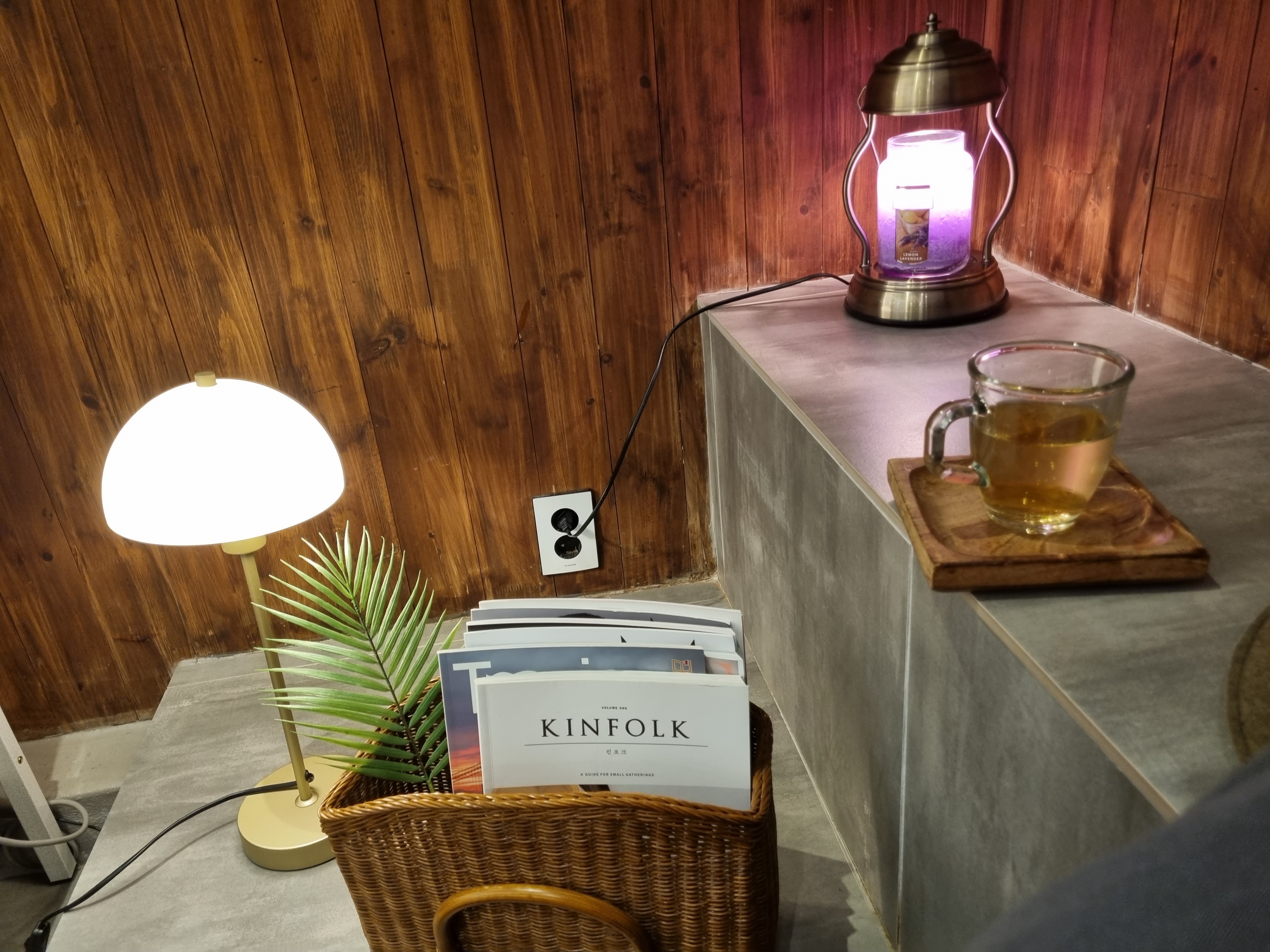 족욕하는 동안 사장님이 마실 차를 준비해 주시고
