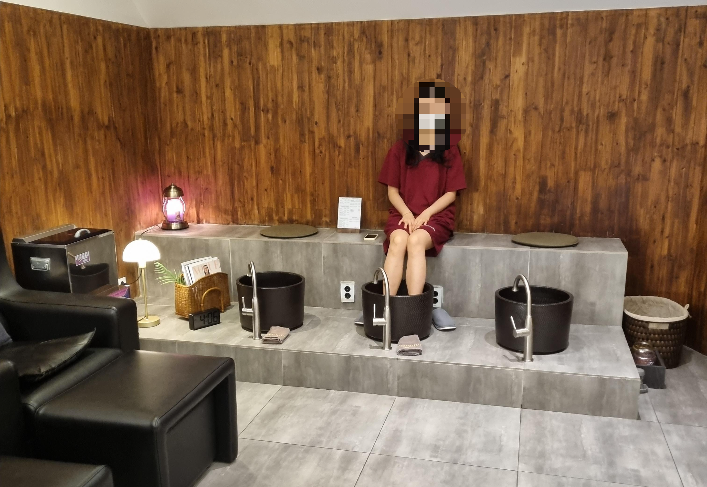 탈의실에서 나오니 먼저 아내가 족욕을 하고 있네요 ㅎ