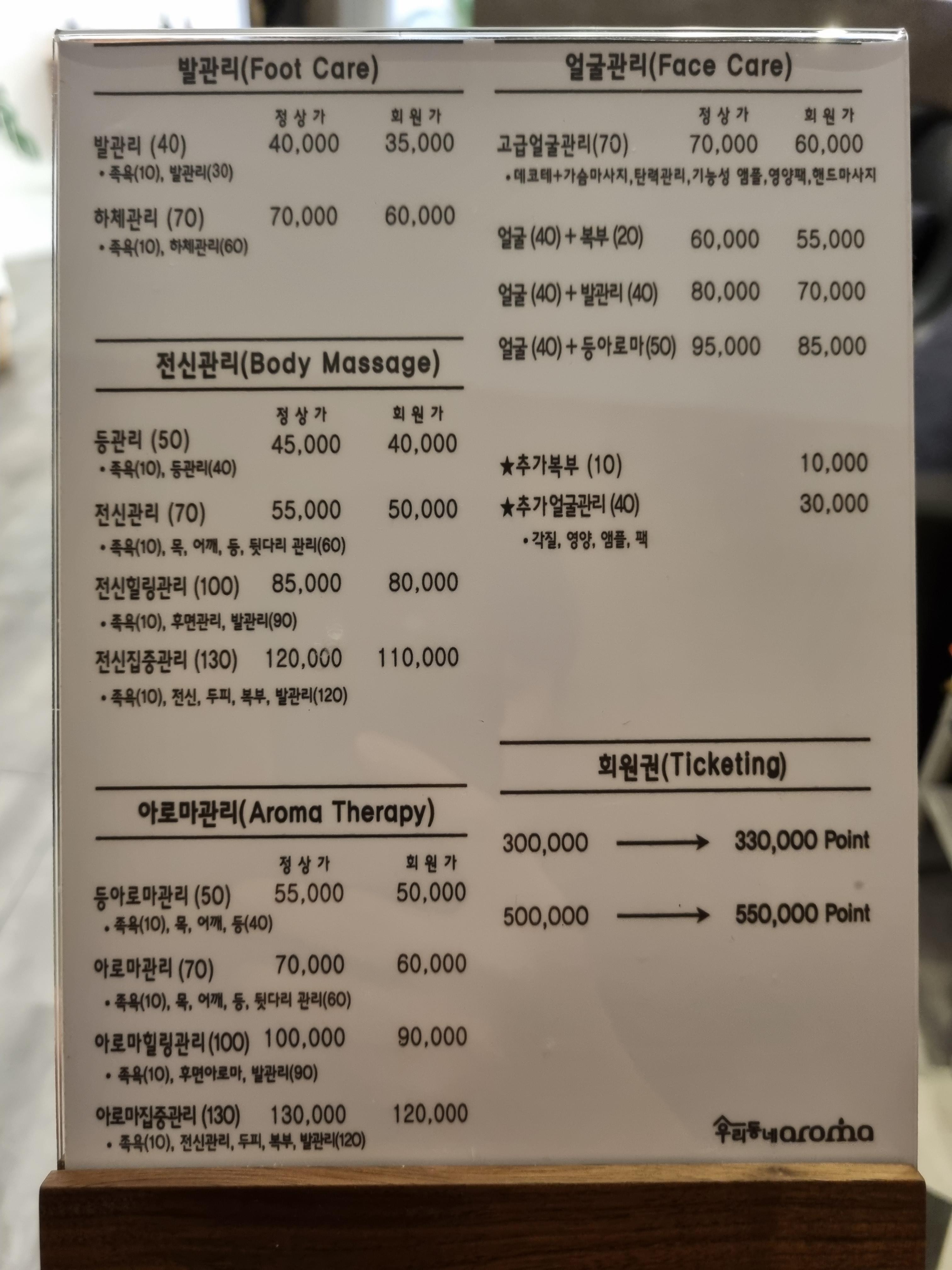 저희는 아로마관리 (70,000원) 바로 탈의실로 안내해 주시네요